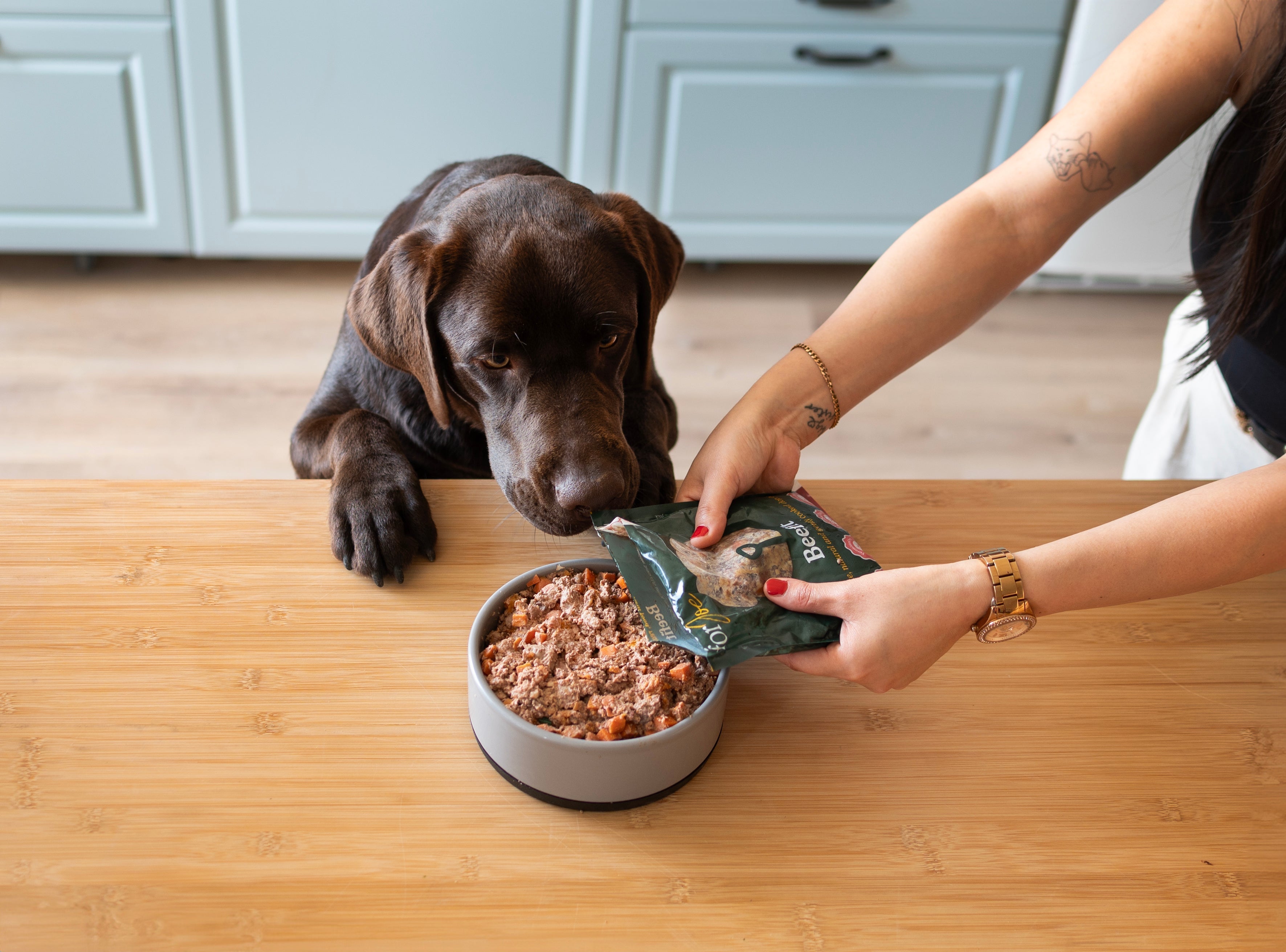Es importante recordar que la alimentación de tu cachorro debe ser equilibrada y nutritiva para asegurar su crecimiento y desarrollo saludable. Una opción excelente es nuestra comida natural para perros que ofrece una variedad de nutrientes esenciales para tu cachorro. Primero, debes determinar el porcentaje de comida que tu cachorro necesita según su edad. Aquí está la tabla de referencia, aunque si lo prefieres, puedes guiarte de nuestra calculadora.